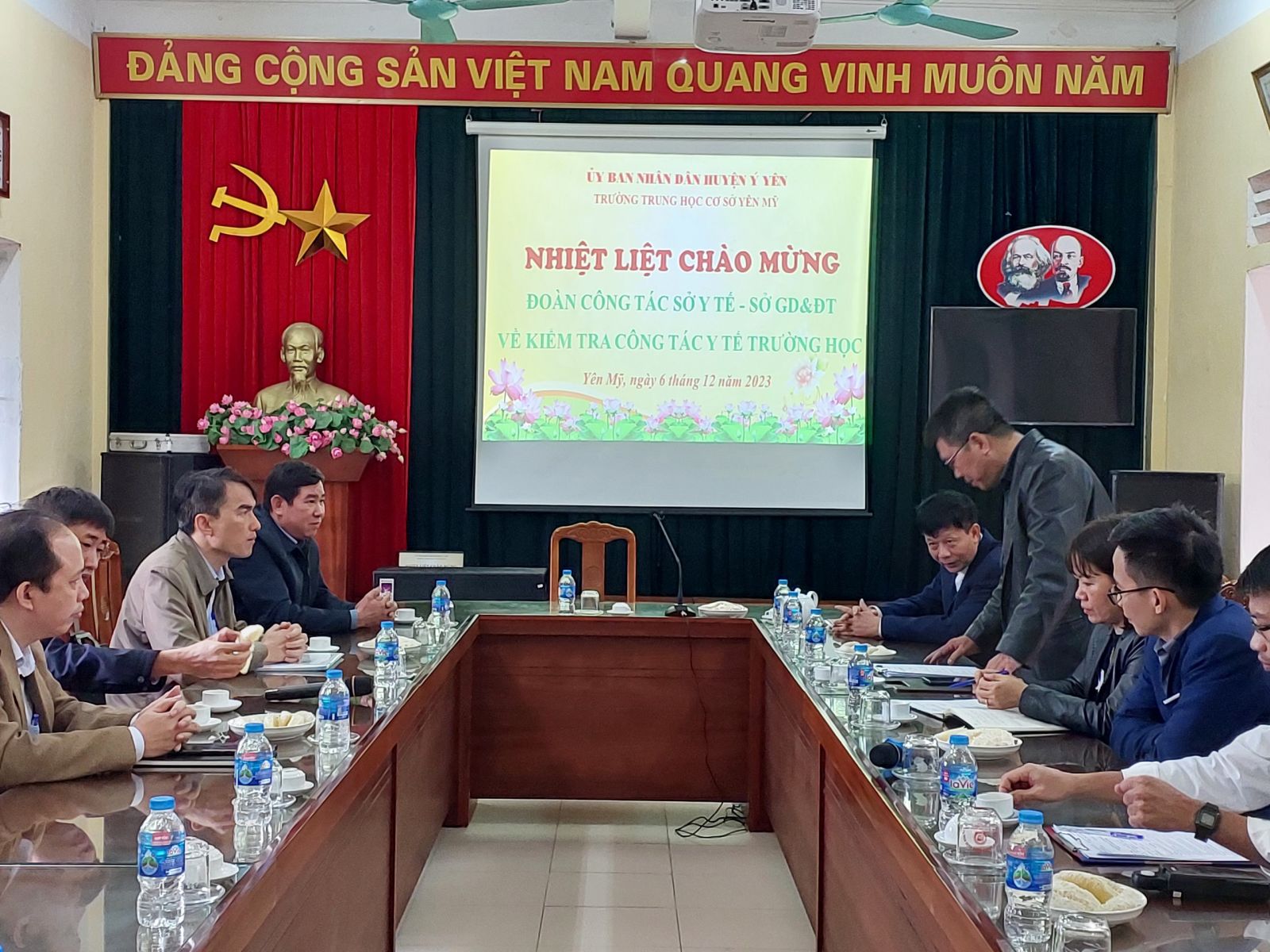 Sáng ngày 6/12/ 2023, Đoàn công tác của Sở y tế, sở GD- ĐT về kiểm tra công tác y tế trường học tại trường THCS Yên Mỹ. Sau một thời gian làm việc khẩn trương, tích cực, Đoàn đã có những nhận xét, đánh giá và tư vấn tích cực về công tác y tế trường học của thầy trò nhà trường. Nhận định chung là kết quả tốt với 92,4 điểm, trường đảm bảo sơ cứu tốt các điều kiện y tế khám, chữa bệnh cho GV và HS.